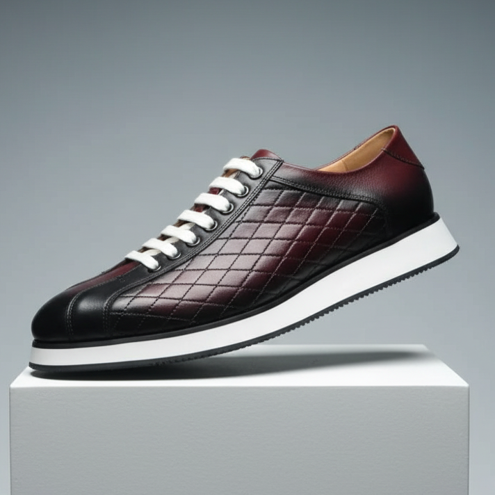 Italian leather delivers weight and presence, with a rich patina blend that draws the eyes. The quilted grid and cushioned interior create a firm, reliable step that works with everything from jeans to formal wear.
