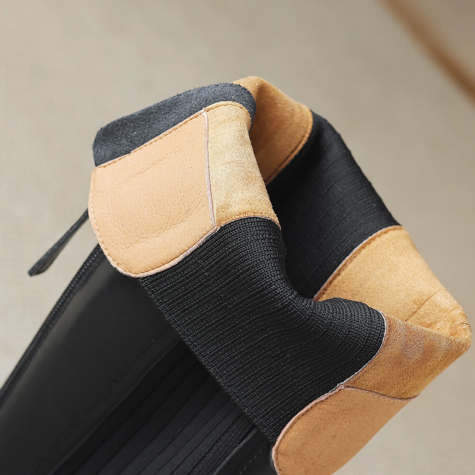It’s the Chelsea, but elevated in every sense. The knee-high rise pairs smooth split leather with ribbed knit that hugs without holding tight. Finished with a sculpted block heel and discreet back zip, it’s a design that blends power with precision.