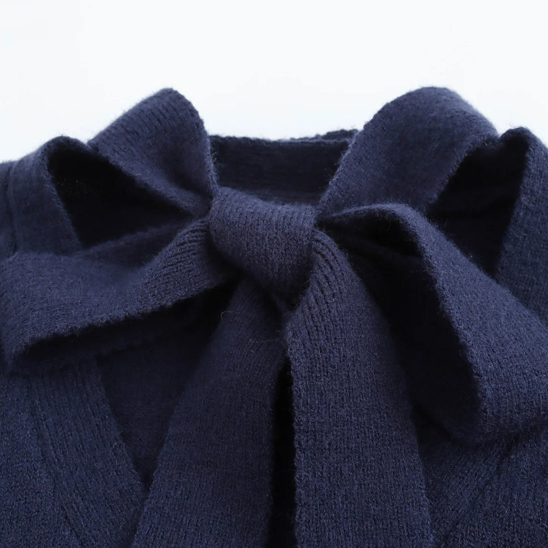 Simply throw this on, & your whole outfit is done. Fine craftsmanship exuded in a charming bow, tidy seams, weighty buttons, & the natural smooth drape across the shoulders. Reliable, elegant, and ready for days where you want polish without effort.
