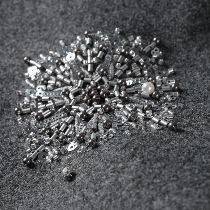 Snowflake embroidery settles across a wool jacket with an intentionally relaxed shape. Warm, structured, and designed to hold presence without excess.