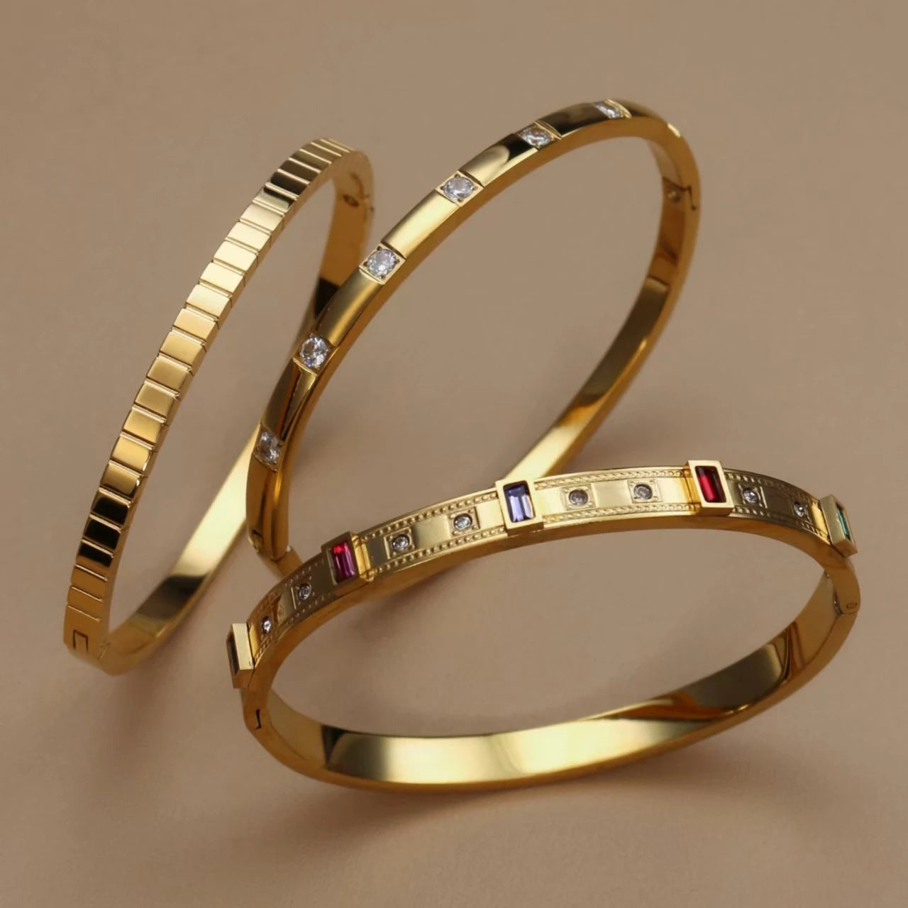 Each bracelet carries its own voice, but together they sing. Clean edges, precise cuts, and light-catching stones give you options to layer your own way. Minimal enough to stay timeless, distinct enough to make it personal.