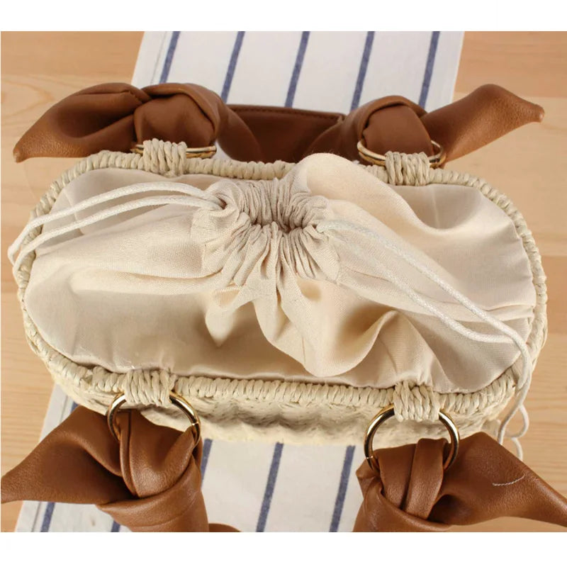 Straw weaving lays down a clean, geometric pattern that feels both organic and modern. Short leather handles finish the look with sharp contrast, designed for everyday summer use.