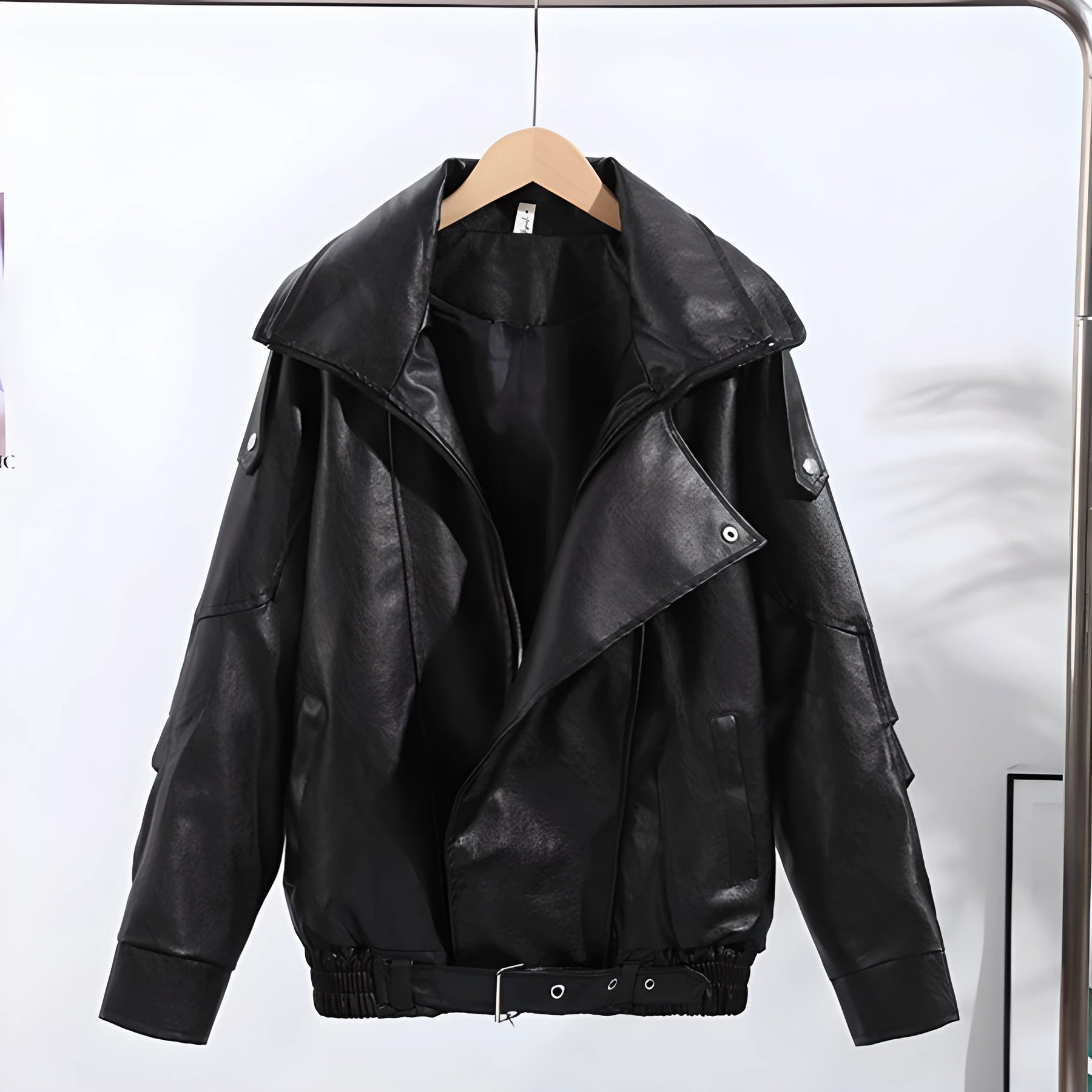 Not your boyfriend’s jacket — but it looks like it could be. Cut deliberately loose, it layers over lace or denim without losing shape. The belted hem and strong lapels ground the oversized fit, giving it the kind of balance that works from day to after-dark.